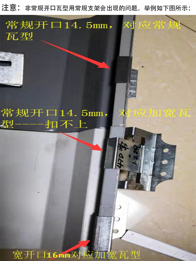820支架是1.0/1.2/1.5*55高的,55mm的高度一般用于角驰820彩钢瓦的单瓦上,假如您在建立过程中,角驰彩钢瓦和檩条之间有棉的话,就要考虑用特别类型的支架了。特别加高的760支架有85/90/100/110/115/125较高的能够加高到150,这个高度同样是依据玻璃丝绵和岩棉的厚度来定做的。