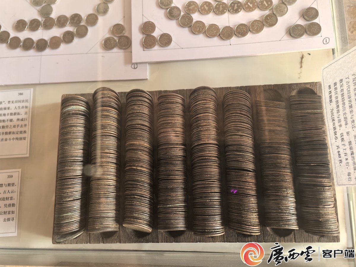 “这个武魁牌匾是我从灵川县农户家买来了,是雍正二十年的;这些古钱币有的是我从古玩市场买回来,有的是朋友送的,有的是我以前收藏的……”15年来,凭着对民俗文化的执着,唐以金跑遍全州县、灵川县和荔浦市等周边县,深入农村、古玩市场收集农户家中不同时期使用的农耕用具、生活用品和民俗器具等“老物件”。